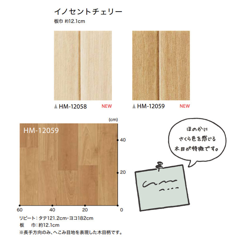 クッションフロア 10cm単位 木目柄 HM-12058 HM-12059 サンゲツ イノセントチェリー