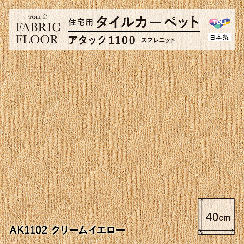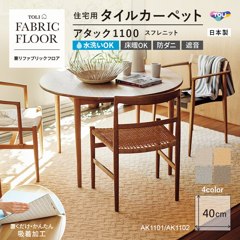 【平日12時までなら即日出荷可】【洗える】【置くだけ】東リ ファブリックフロア 住宅用タイルカーペット アタック1100 キャンパスファイン 40×40cm